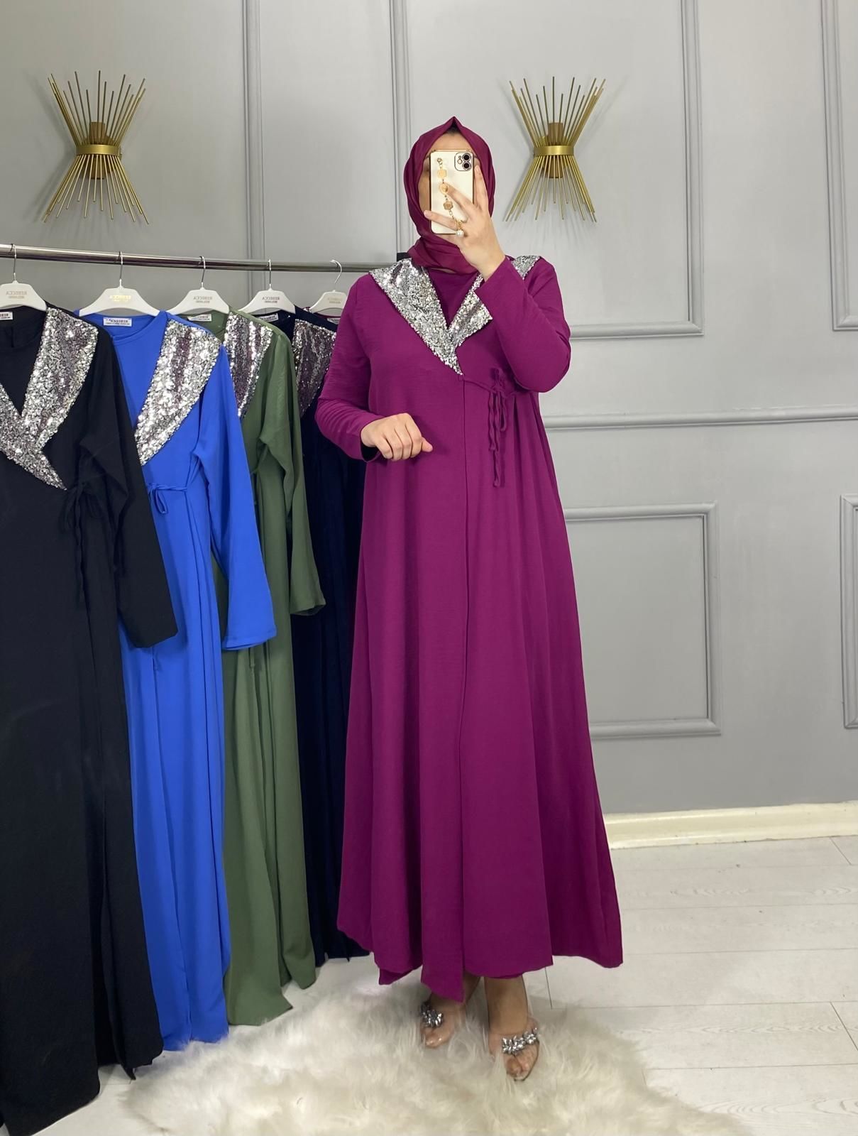 Yakası Pul Payet İşlemeli Elbise Kap Takım (36-50 Beden Aralığı)
